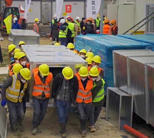 4万多名建设者在短时间内完成集结,发挥设计、交底、土建、设备安装、装修等全产业链优势,以天为单位来安排工期,把施工节点细分到小时甚至分钟,实现了数百家分包单位、上千道工序、几万名建设者的无缝对接、高效协同,以求在最快的时间把医院建成。“中国速度”的背后,是党领导下,一个国家的强大动员能力。