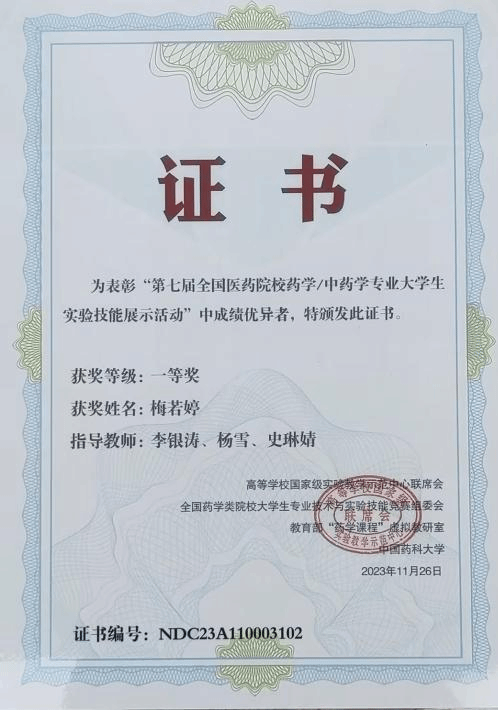 我校学生在“第七届全国医药院校药学/中药学专业大学生实验技能展示活动”中取得优异成绩