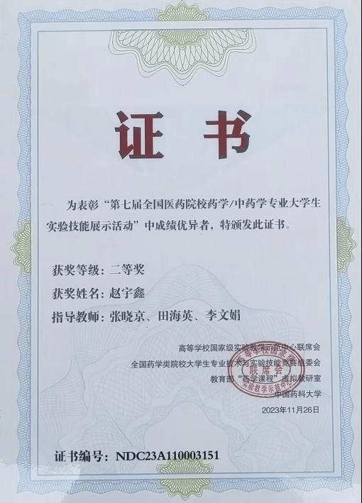 我校学生第七届全国医药院校药学/ 中药学专业大学生实验技能展示活动取得优异成绩